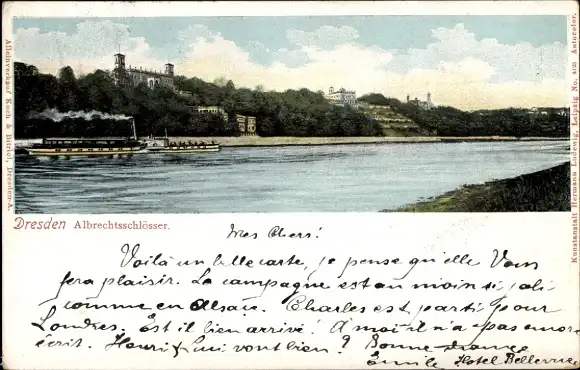 Ak Dresden Loschwitz, Albrechtsschlösser, Elbe, Dampfer