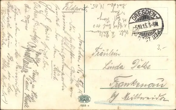 Zustand, siehe Scan, gelaufen, 1915 - ca 14 cm X 9 cm