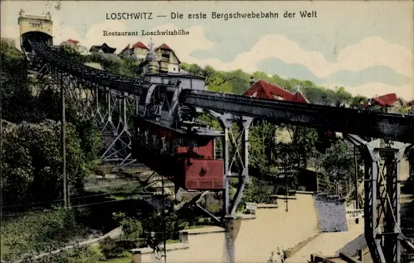 Ak Dresden Loschwitz, Die erste Bergschwebebahn der Welt, Restaurant Loschwitzhöhe