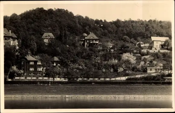 Ak Dresden Loschwitz?, Häuser am Elbufer