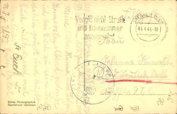 Zustand siehe Scan, gelaufen, 1944 - ca 14 cm X 9 cm