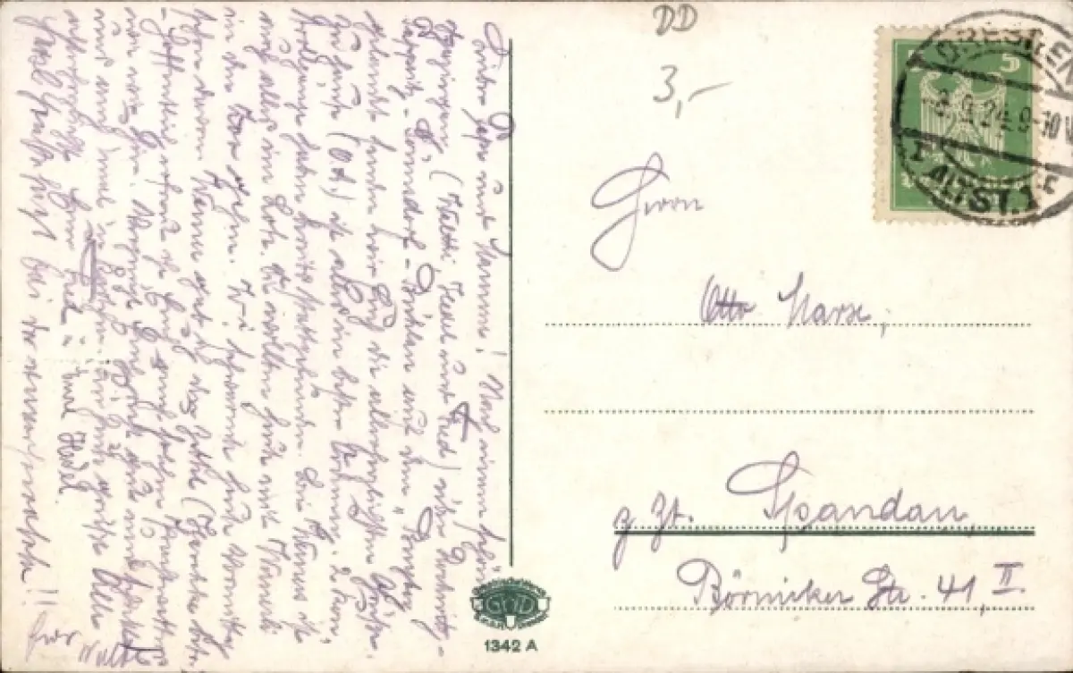 Zustand, siehe Scan, gelaufen, 1924 - ca 14 cm X 9 cm