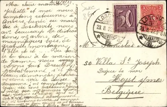 Zustand, siehe Scan, gelaufen, 1922 - ca 14 cm X 9 cm