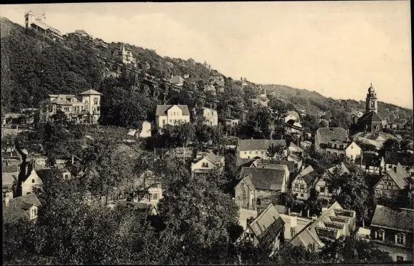Ak Dresden Loschwitz, Teilansicht, Schwebebahn, Kirchturm