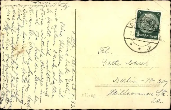 Zustand, siehe Scan, gelaufen, 1933 - ca 14 cm X 9 cm