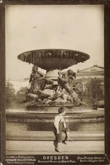 Ak Dresden Neustadt, Albertplatz, Monumentbrunnen, Kind