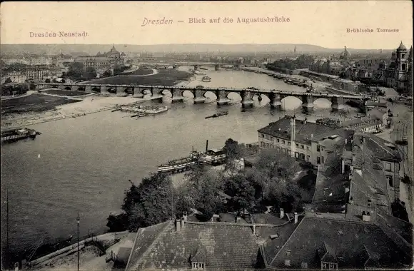 Ak Dresden Neustadt, Augustusbrücke, Brühlsche Terrasse