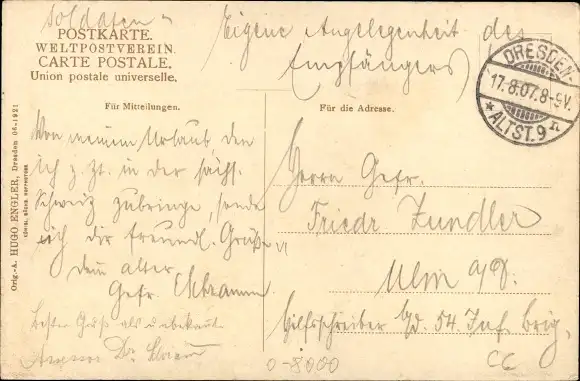 Zustand, siehe Scan, gelaufen, 1907 - ca 14 cm X 9 cm