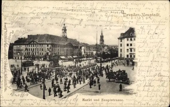 Ak Dresden Neustadt, Markt und Hauptstraße