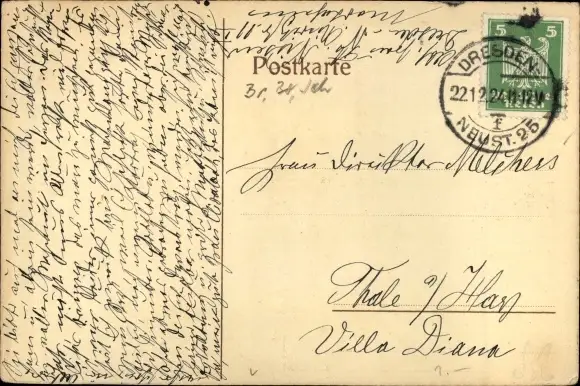 Zustand, siehe Scan, gelaufen, 1924 - ca 9 cm X 14 cm