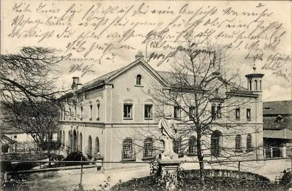 Ak Dresden Neustadt, mit Ansicht eines Gebäudes, Bäume, Statue, handschriftlicher Text
