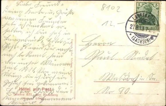 Ak Dresden Nord Langebrück, Hotel zur Post