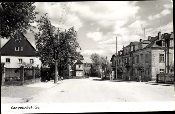 Ak Dresden Nord Langebrück, Straßenpartie mit flankierenden Wohngebäuden