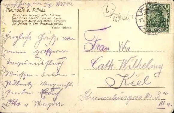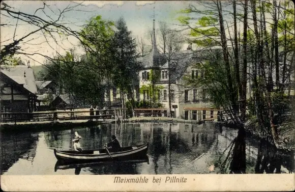 Ak Dresden Pillnitz, Meixmühle im Friedrichsgrund, Ruderboot, Gedicht
