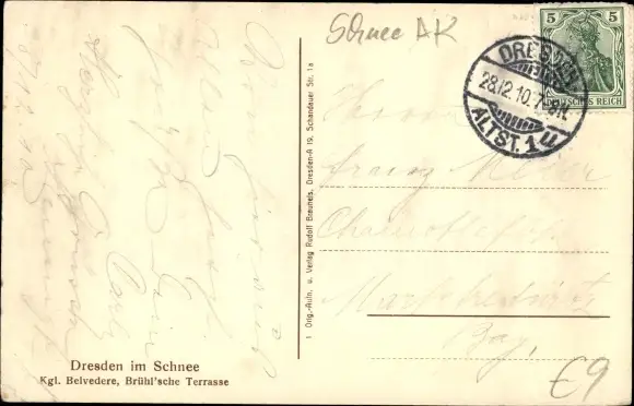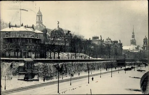 Ak Dresden Zentrum Altstadt, Winteransicht, Belvedere, Brühl'sche Terrasse
