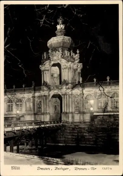 Ak Dresden, Zwinger, Kronentor, Nachtbeleuchtung