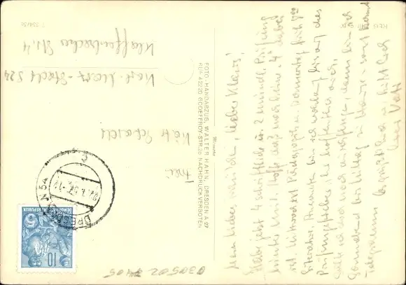 Zustand, siehe Scan, gelaufen, 1957- Hahn 13504 - ca 11 cm X 15 cm
