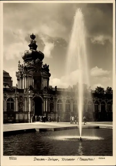 Ak Dresden, Zwinger, Kronentor, Neuaufbau, Fontäne