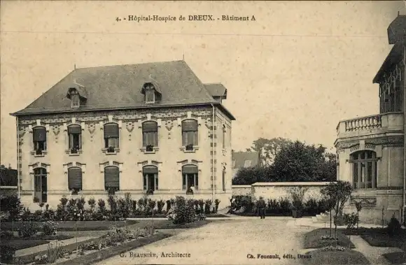 Ak Dreux Eure et Loir, vue générale de l'Hôpital Hospice, Bâtiment A