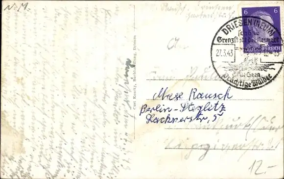 Zustand, siehe Scan, gelaufen, 1943 - ca 14 cm X 9 cm