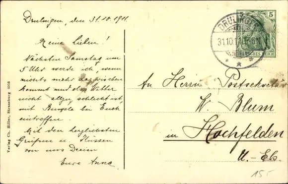 Zustand, siehe Scan, gelaufen, 1911 - ca 14 cm X 9 cm