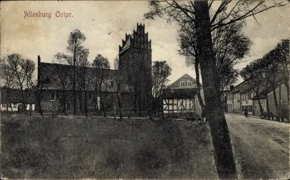 Ak Druschba Allenburg Ostpreußen, Teilansicht mit Kirche