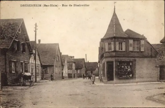 Ak Drusenheim Elsass Bas Rhin, Rue de Bischwiller, Handlung