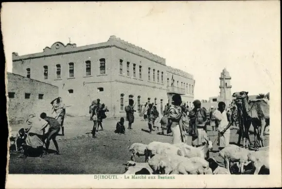 Ak Dschibuti, Viehmarkt, Ziegen, Kamel