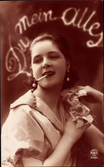 Ak Du mein alles, Portrait einer Frau mit Zigarette