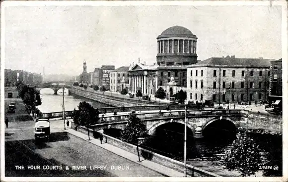 Ak Dublin Irland, Four Courts, Fluss Liffey