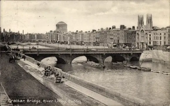 Ak Dublin Irland, Grattan-Brücke, Fluss Liffey