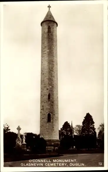 Ak Dublin Irland, O'Connell Monument, Glasnevin Cemetery, hohe Säule, Bäume