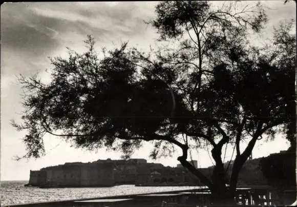 Ak Dubrovnik Kroatien, Ortsansicht, Ufer, Baum, Häuser im Hintergrund