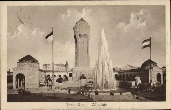 Ak Düren im Rheinland, Cölnplatz, Springbrunnen, Wasserturm