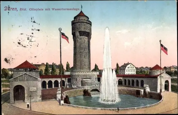 Ak Düren im Rheinland, Cölnplatz mit Wassserturmanlage