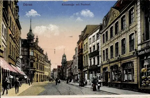 Ak Düren im Rheinland, Kölnstraße mit Postamt, Geschäfte