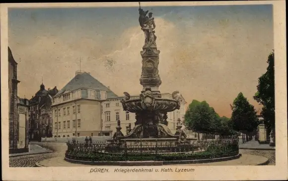 Ak Düren im Rheinland, Kriegerdenkmal, Kath. Lyzeum