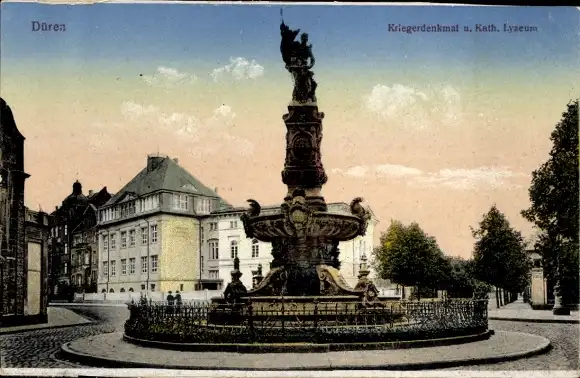 Ak Düren im Rheinland, Kriegerdenkmal, Katholisches Lyzeum