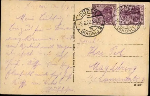Zustand, siehe Scan, gelaufen, 1922 - ca 14 cm X 9 cm