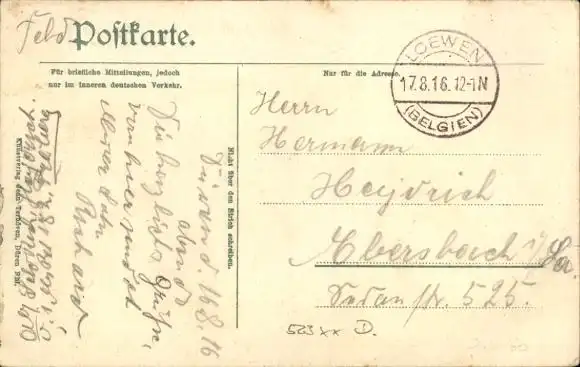 Zustand siehe Scan, gelaufen, 1916 - ca 5 cm X 3 cm
