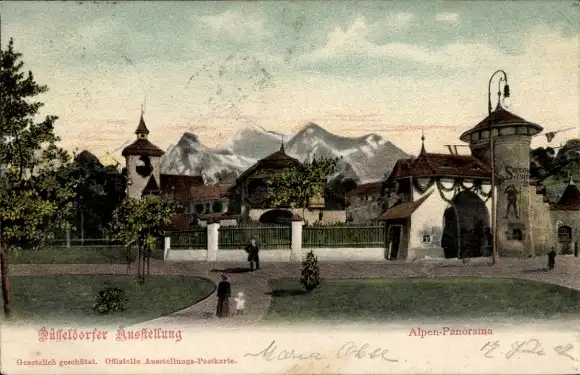Ak Düsseldorf, Ausstellung 1902, Alpen Panorama