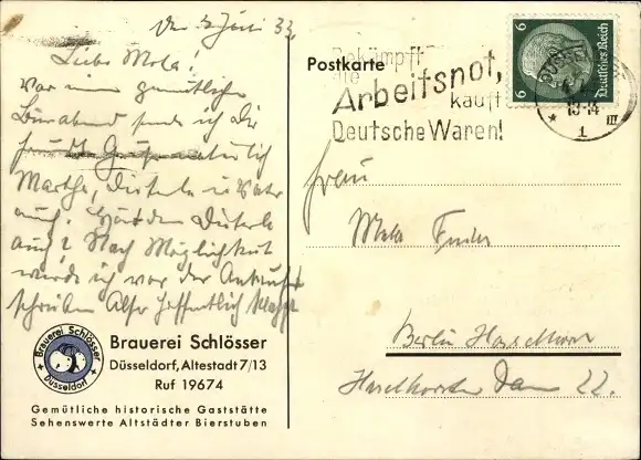 Ak Düsseldorf am Rhein, Brauerei Schlösser
