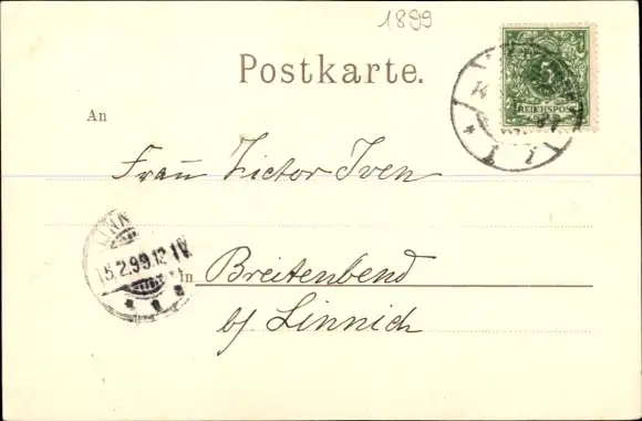 Zustand siehe Scan, gelaufen, 1899 - ca 14 cm X 9 cm