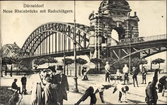 Ak Düsseldorf am Rhein, Neue Rheinbrücke mit Radschlägern