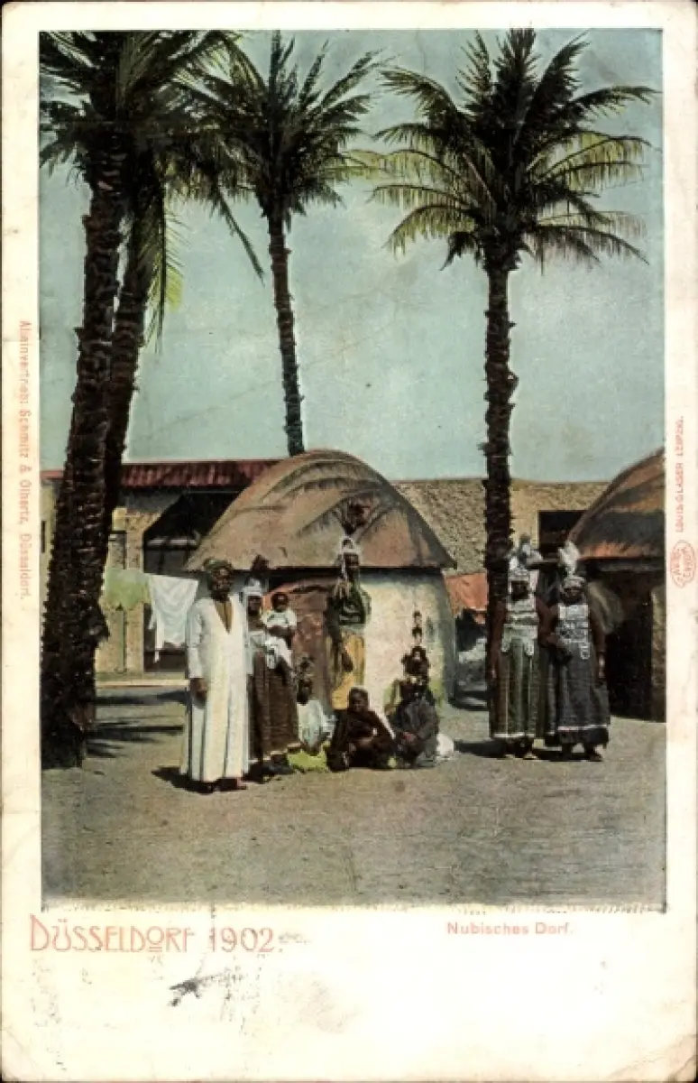 Ak Düsseldorf am Rhein, Nubisches Dorf, Industrie u. Gewerbe Ausstellung 1902, Palmen, Hütten