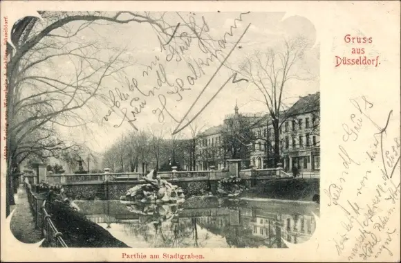 Ak Düsseldorf am Rhein, Partie am Stadtgraben