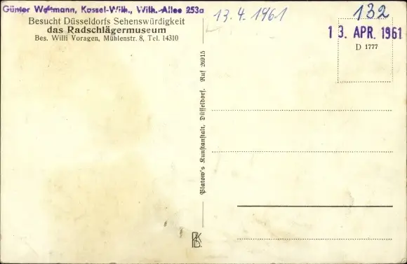 Ak Düsseldorf am Rhein, Radschlägermuseum