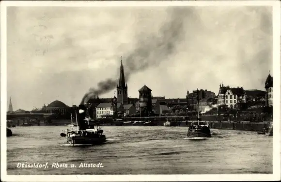 Ak Düsseldorf am Rhein, Rhein u. Altstadt