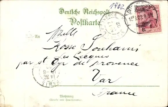 Zustand, siehe Scan, gelaufen, 1902 - ca 14 cm X 9 cm