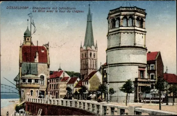 Ak Düsseldorf am Rhein, Rheinpartie mit Schlossturm
